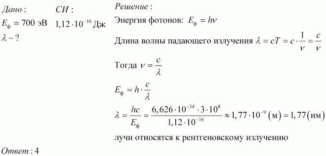 К какому диапазону излучения следует отнести лучи, энергия фотонов которых равна 700 эВ?