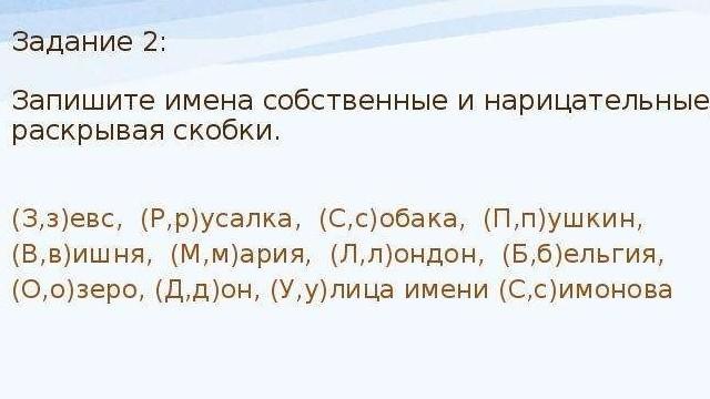 Нарицательные: русалка, собака, вишня, озеро, улица.