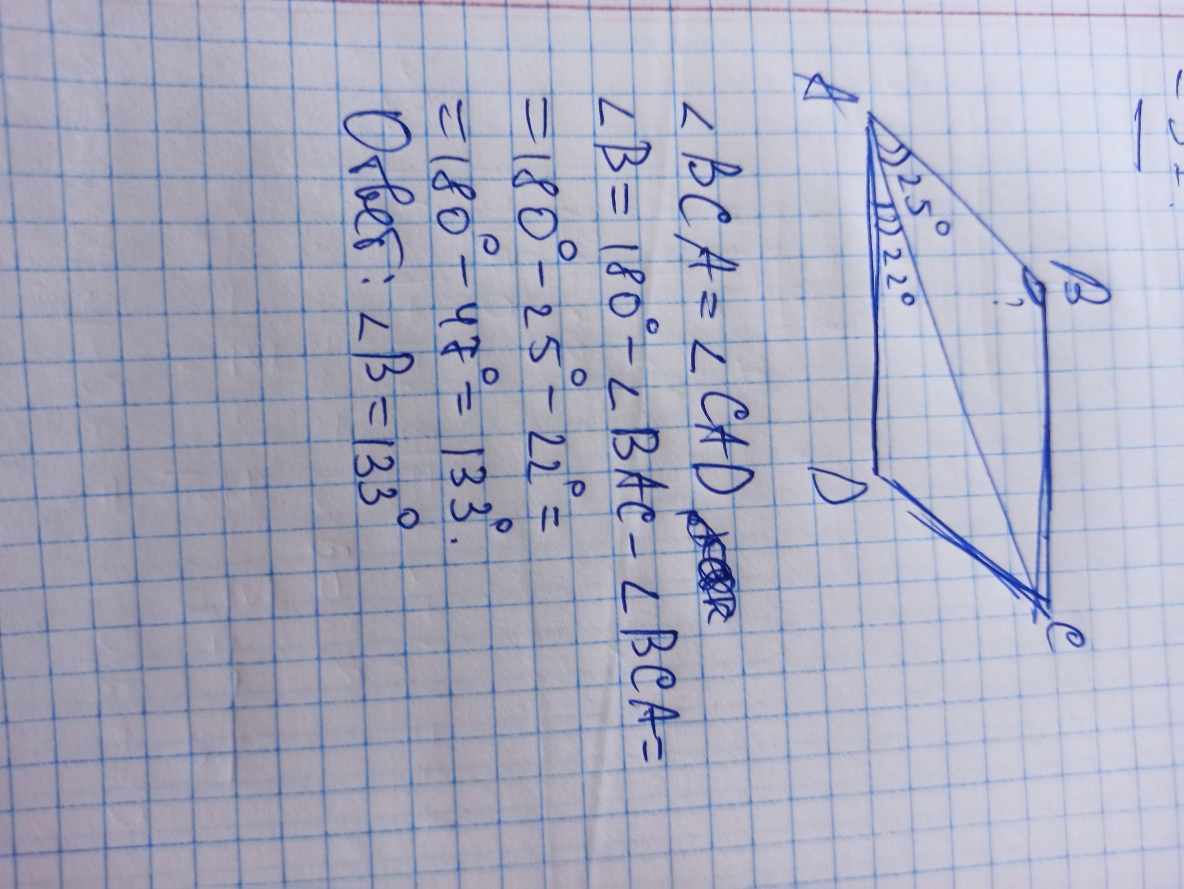 - угол ABC=180°-22°-25°=133°