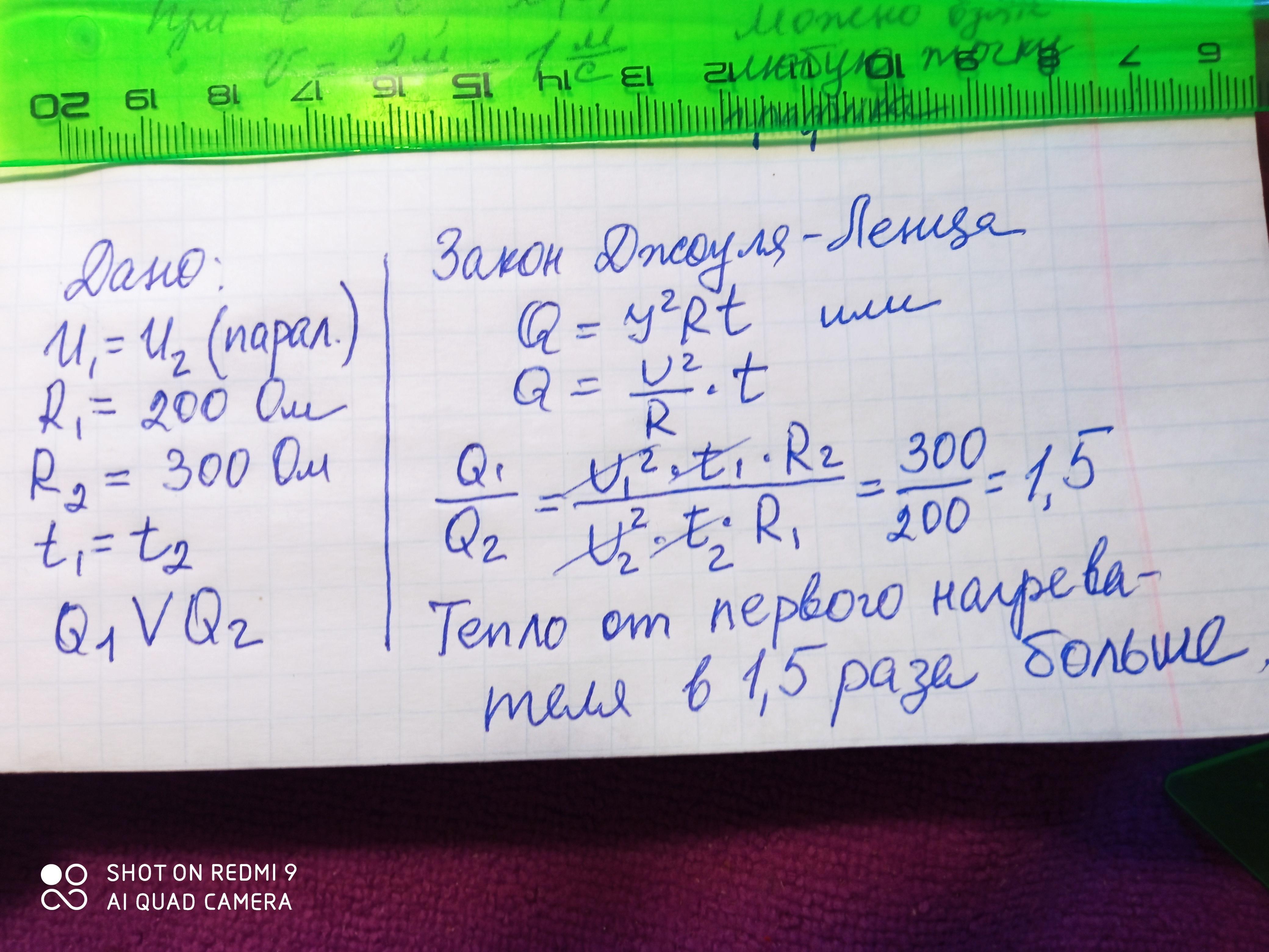 6. Два электронагревателя с сопротивлением 200 Ом и 300 Ом подклю- чены параллельно к электрической сети. Сравните количество теплоты, выделенное ими в одно и то же время.пожалуйста решите задачу с дано формулой и решением пж дам много баллов