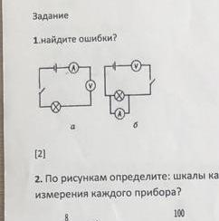 На рисунке б вольтметр подключен последовательно, а амперметр параллельно. Необходима наоборот вольтметр параллельно, а амперметр последовательно.