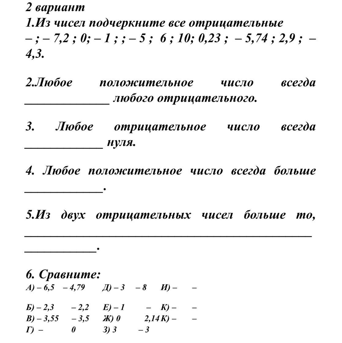 5.Из двух отрицательных чисел меньше то, модуль которого больше(то, которое на координатной прямой находится левее.)
