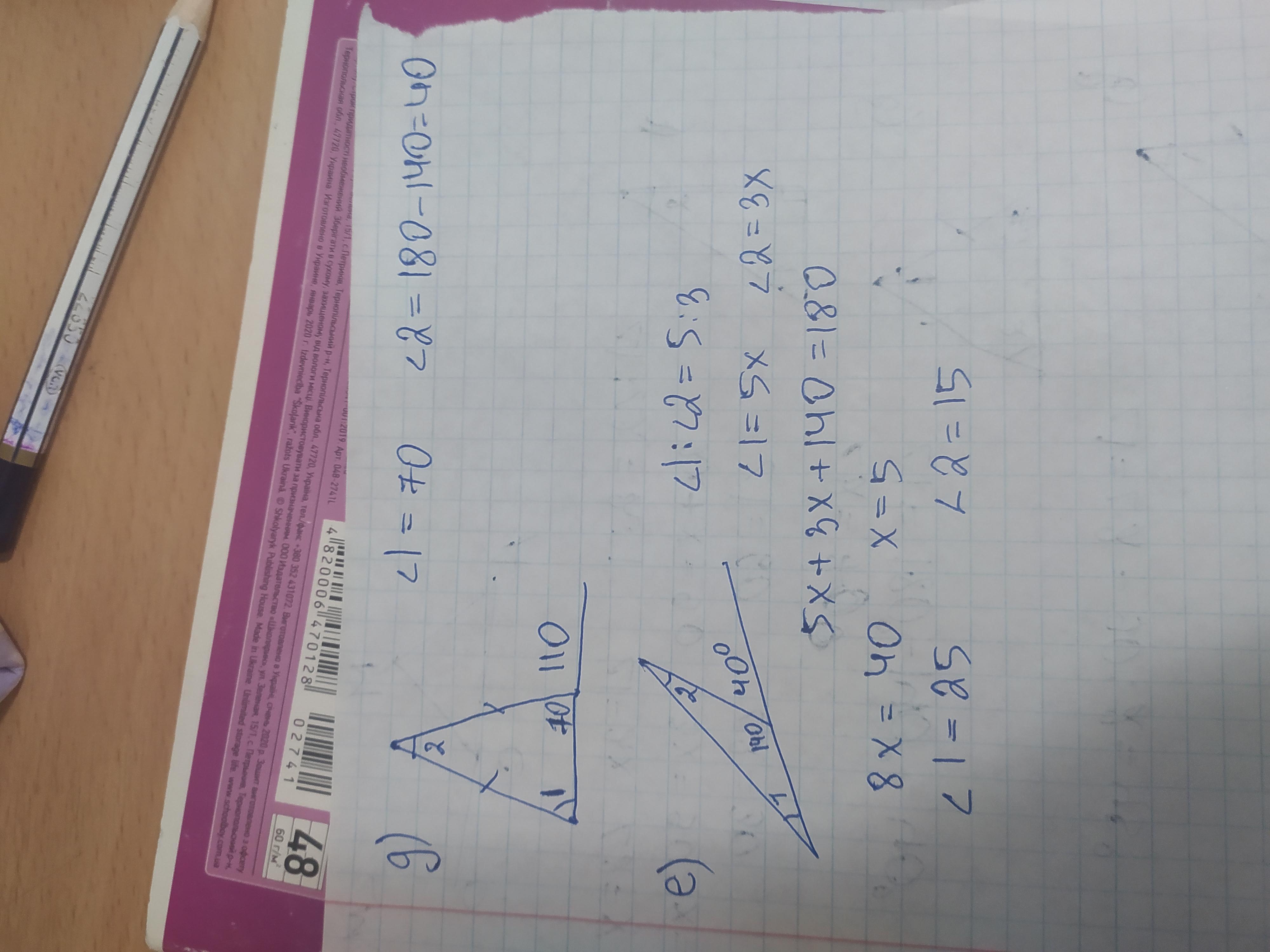 а) 60; 30 б) 40; 70 в) 45; 45 г) 70; 80 д) 70; 40 е) 25; 15
