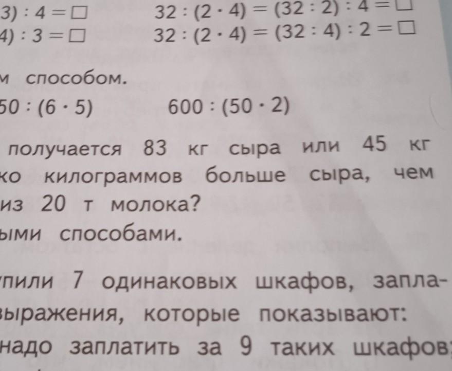 1) 83 − 45 = на 38 (кг) − больше получается сыра, чем масла;