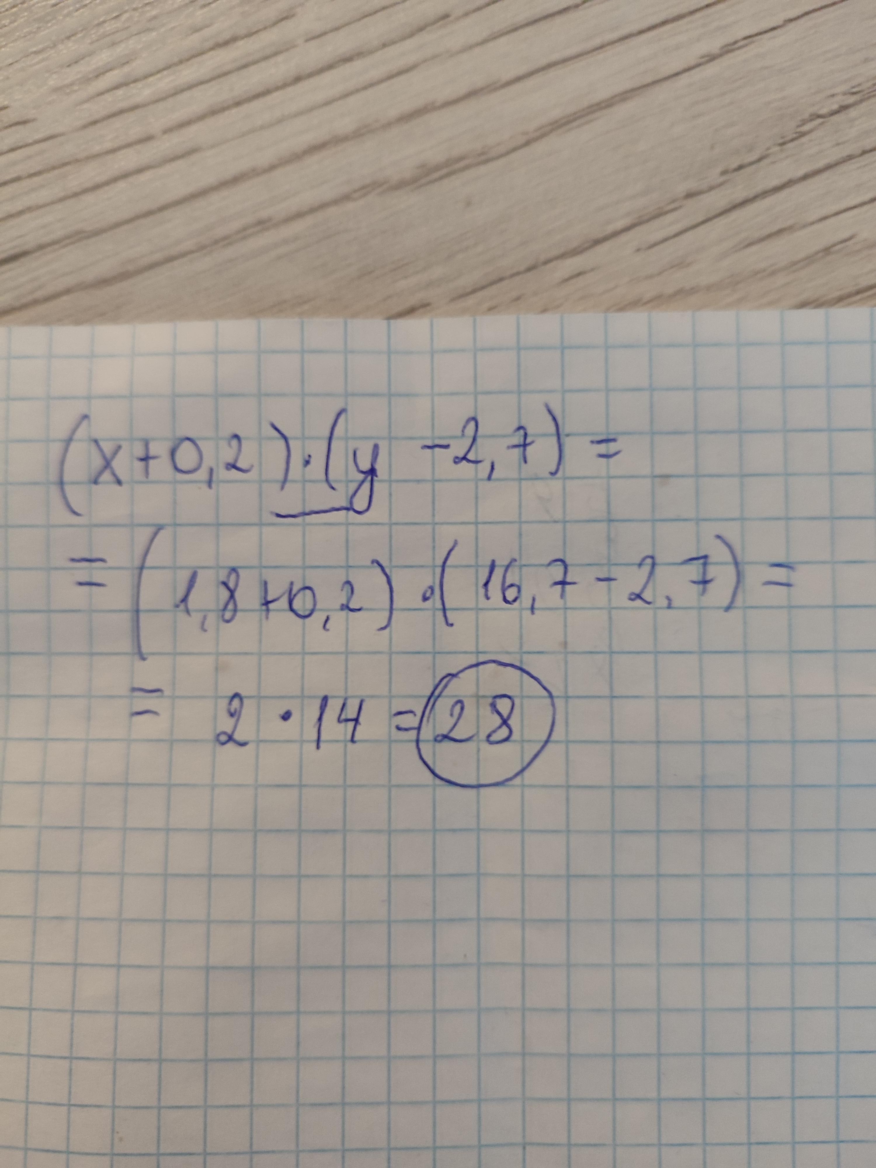 представьте в виде произведения выражение y(x+0,2)-2,7(x+0,2) и найдите его числовое значение при x=1,8; y=16,7
