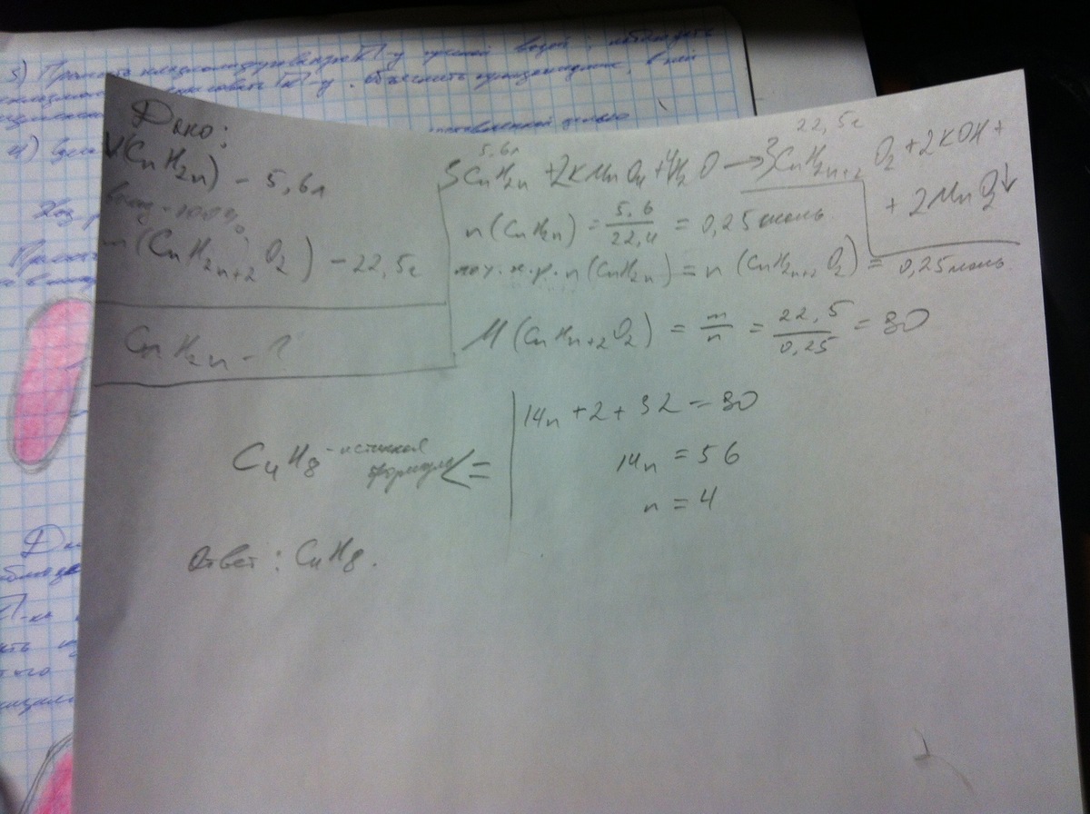 При окислении 5,6л Алкена холодным. При окислении 5,6л Алкена холодным раствором перманента калия,образовалось 22,5 г двухатомного спирта. Реакция идет со 100 % выходом. Установите молекулярную формулу алкена