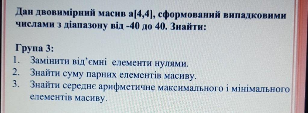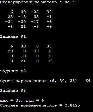 cout << "Сгенерированный массив 4 на 4" << endl << endl;
