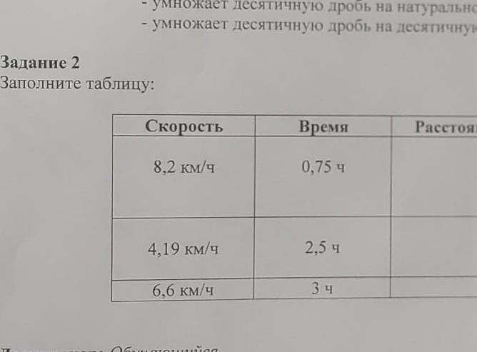 S=V•t. 8.2*0.75=6.15. 4.19*2.5=10.475. 6.6*3=19.8