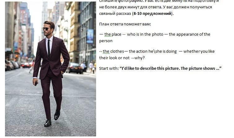 He has a brown suit, black shoes and a black tie with a white shirt.