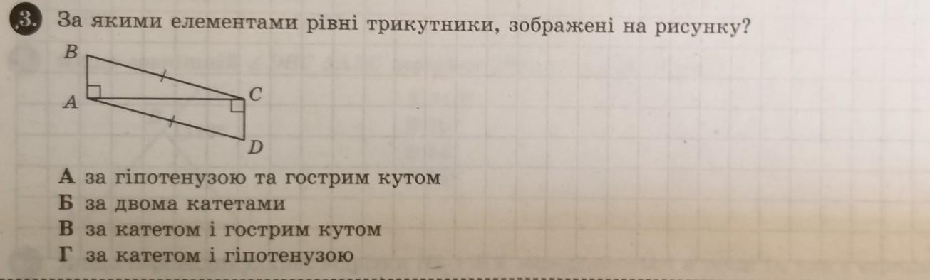 За якими елементами рiвнi трикутники, зображені на рисунку?