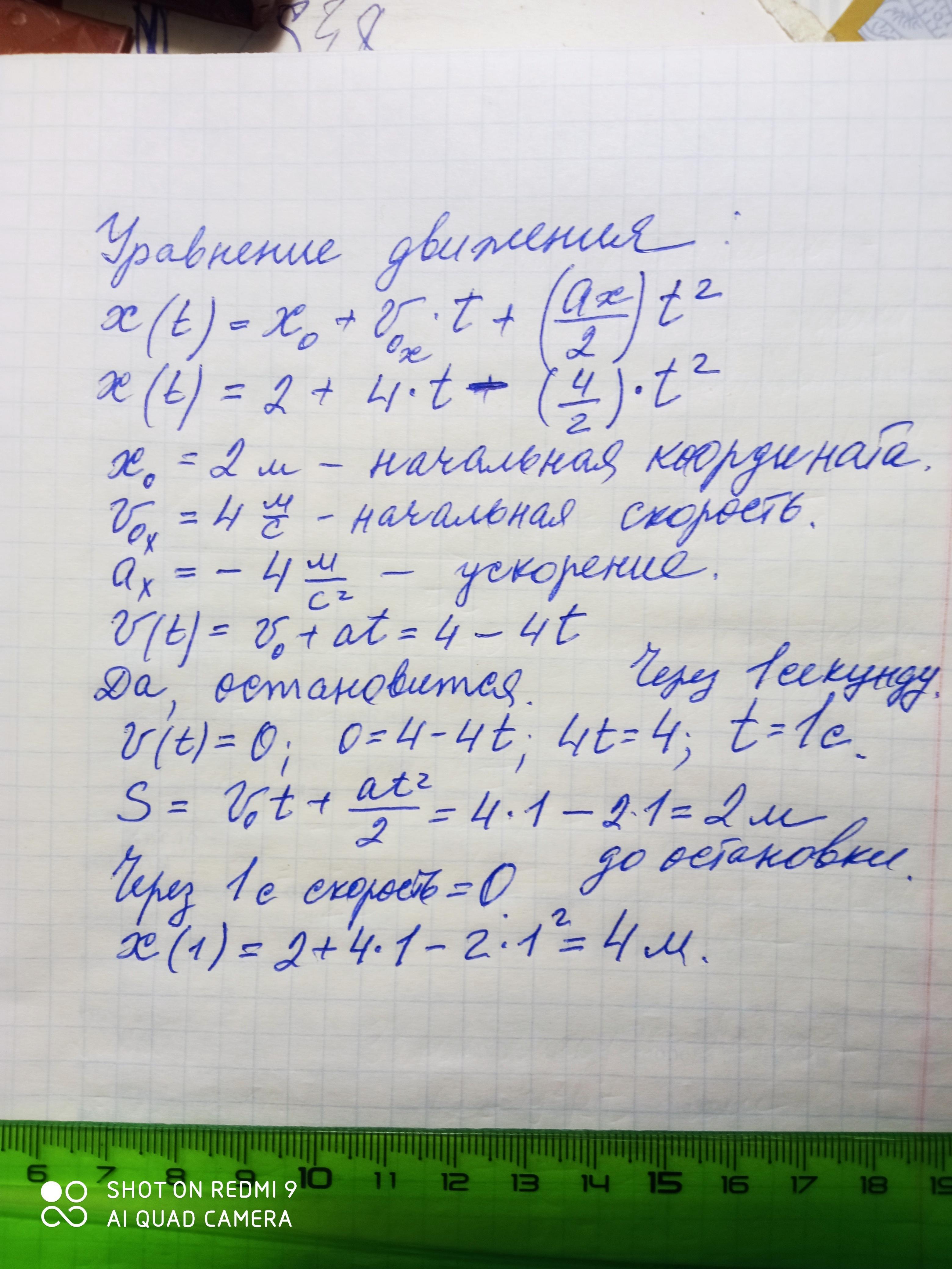 У виразі Х = 2+4t -2t² визначте: початкову координату,