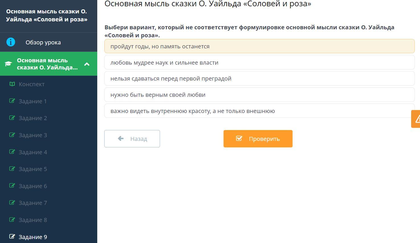 Основная мысль сказки О. Уайльда «Соловей и роза»