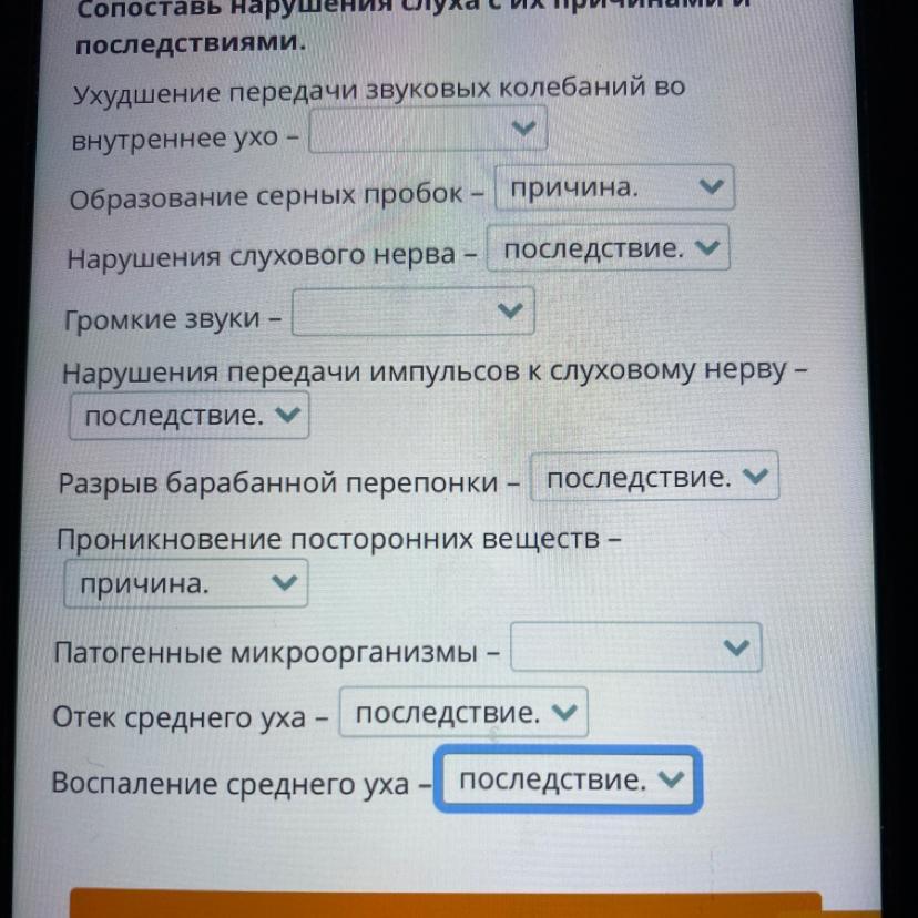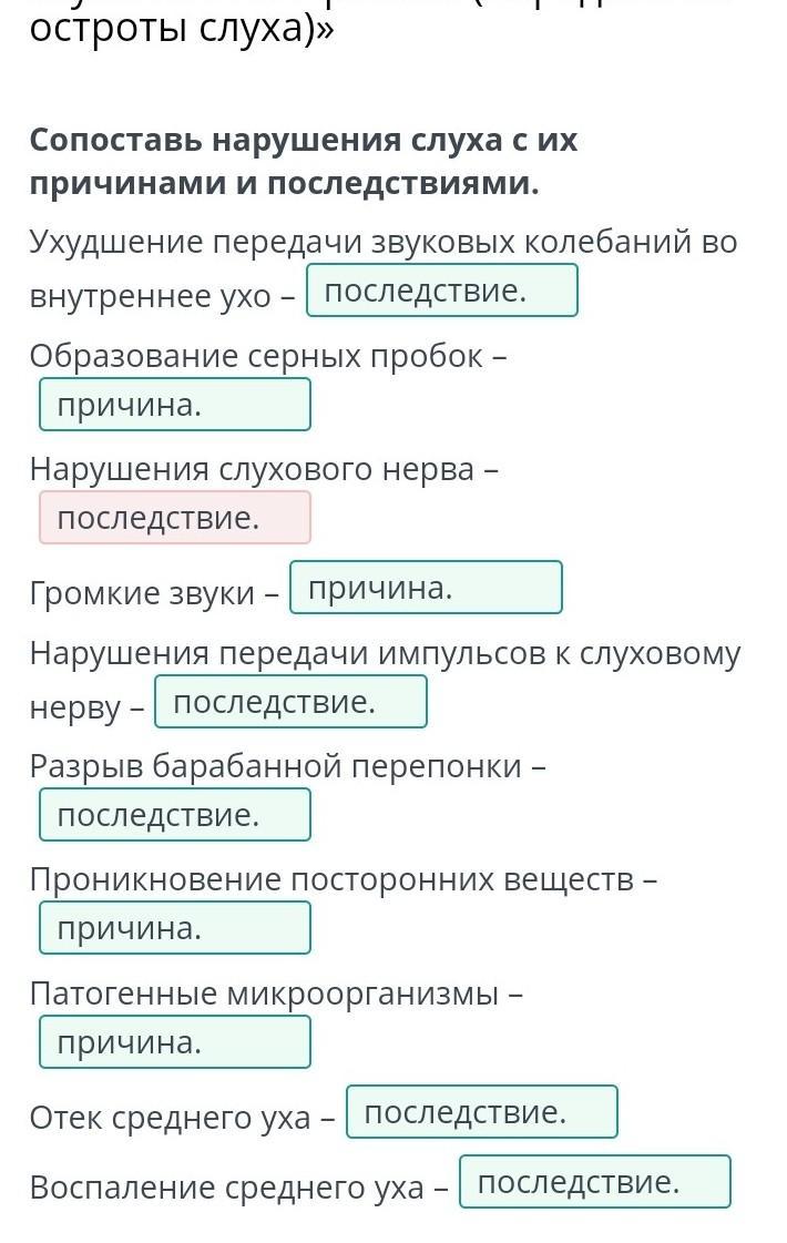 Сопоставь нарушения слуха с их причинами и