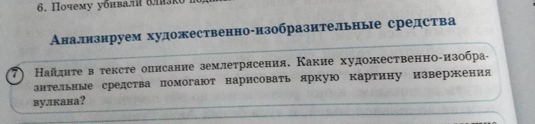 Найдите в тексте описание землетрясения. Какие художественно-изобра- зительные средства помогают нарисовать яркую картину извержения вулкана?