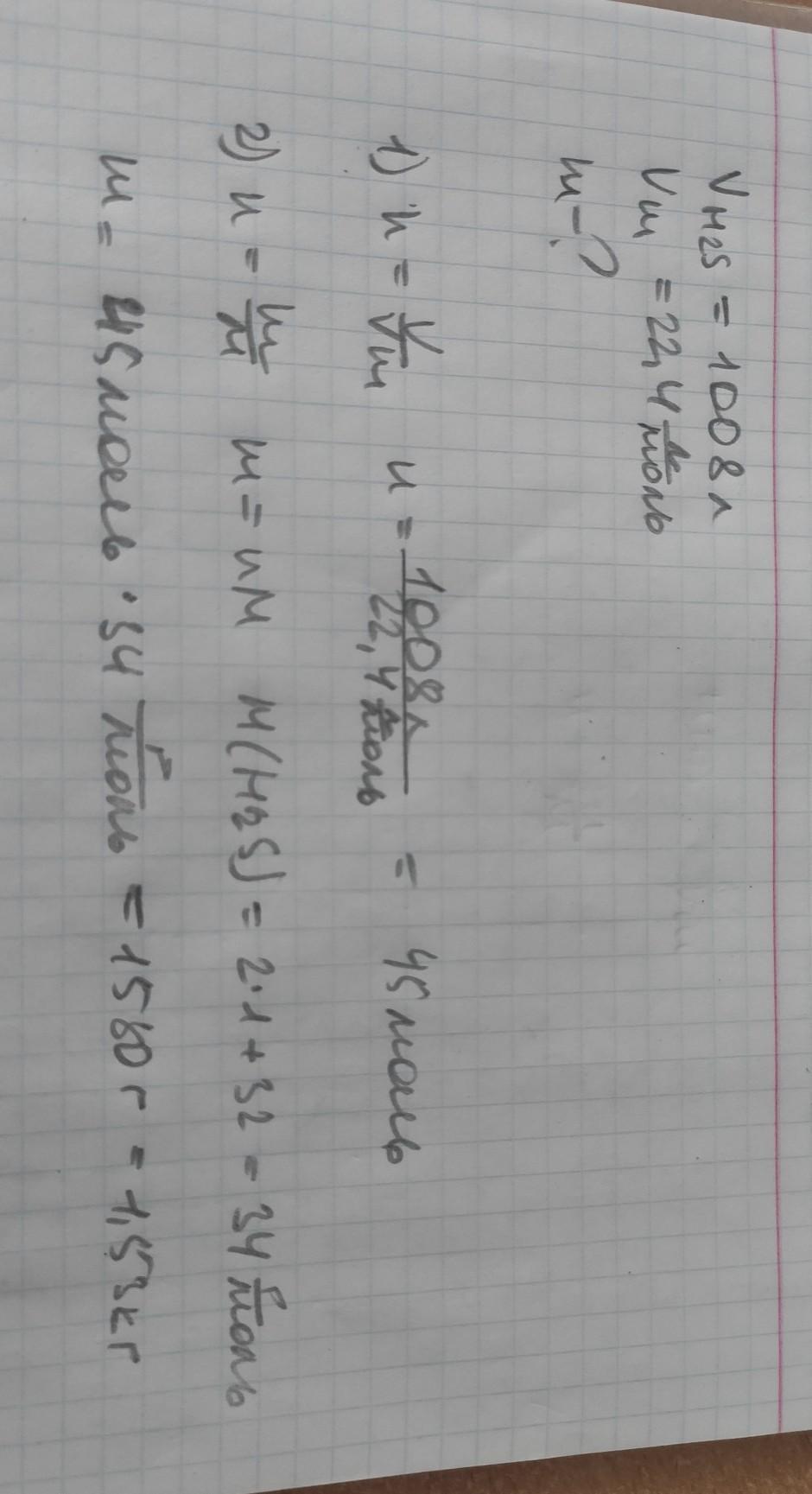 Об'єм сірководню H2S при нормальних умовах дорівнює 1008 л. Визнач масу цієї порції газу.