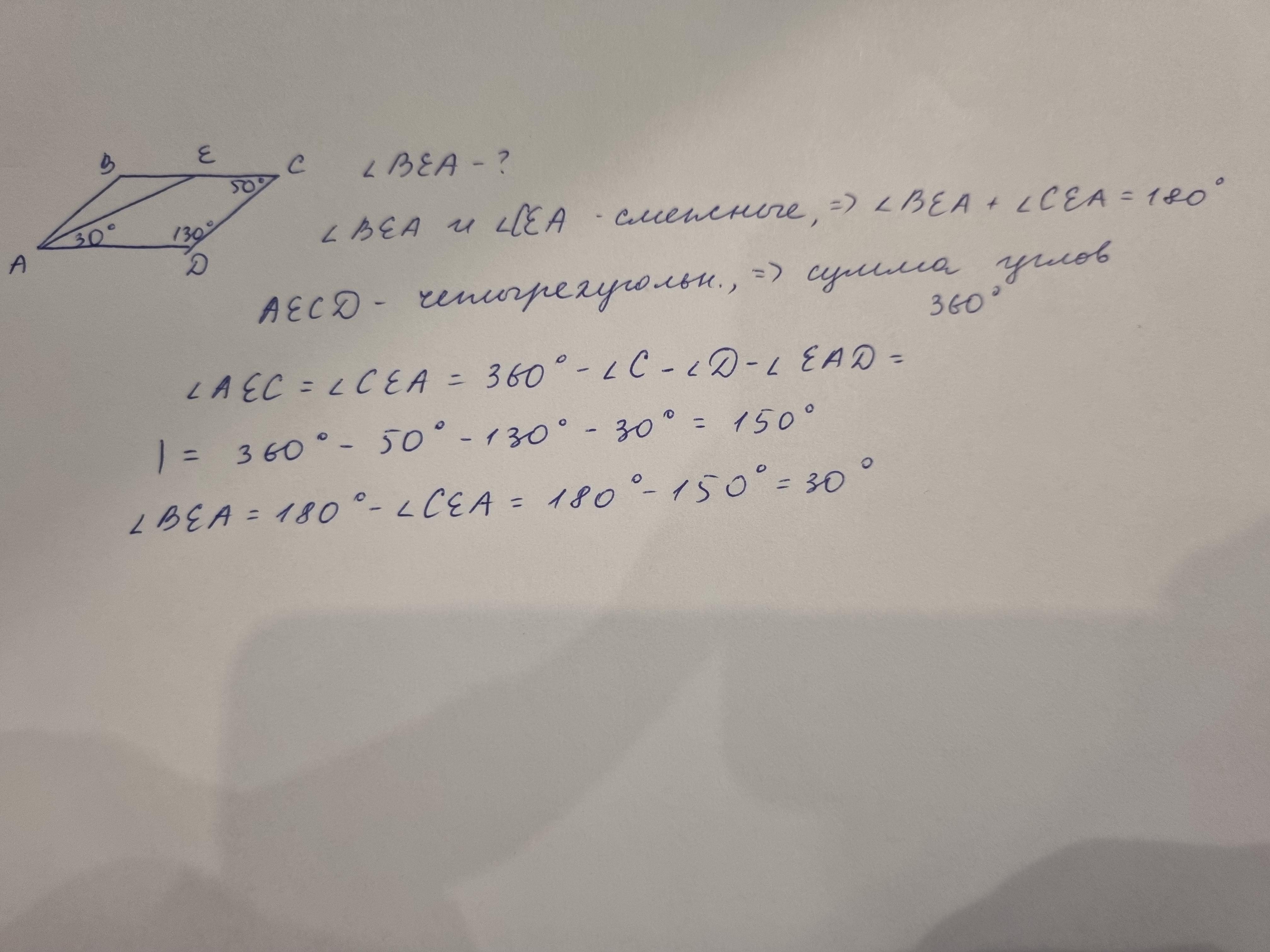 Вообще можно было бы решить в е в одно действие, используя свойства внутренних накрест лежащих. Но тут не указано, что четырехугольник - параллелограмм.