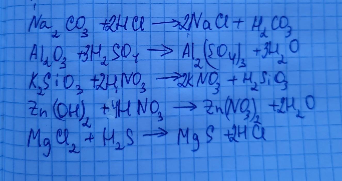 Закончите уравнения реакций в молекулярном и ионном виде, укажите тип реакции.