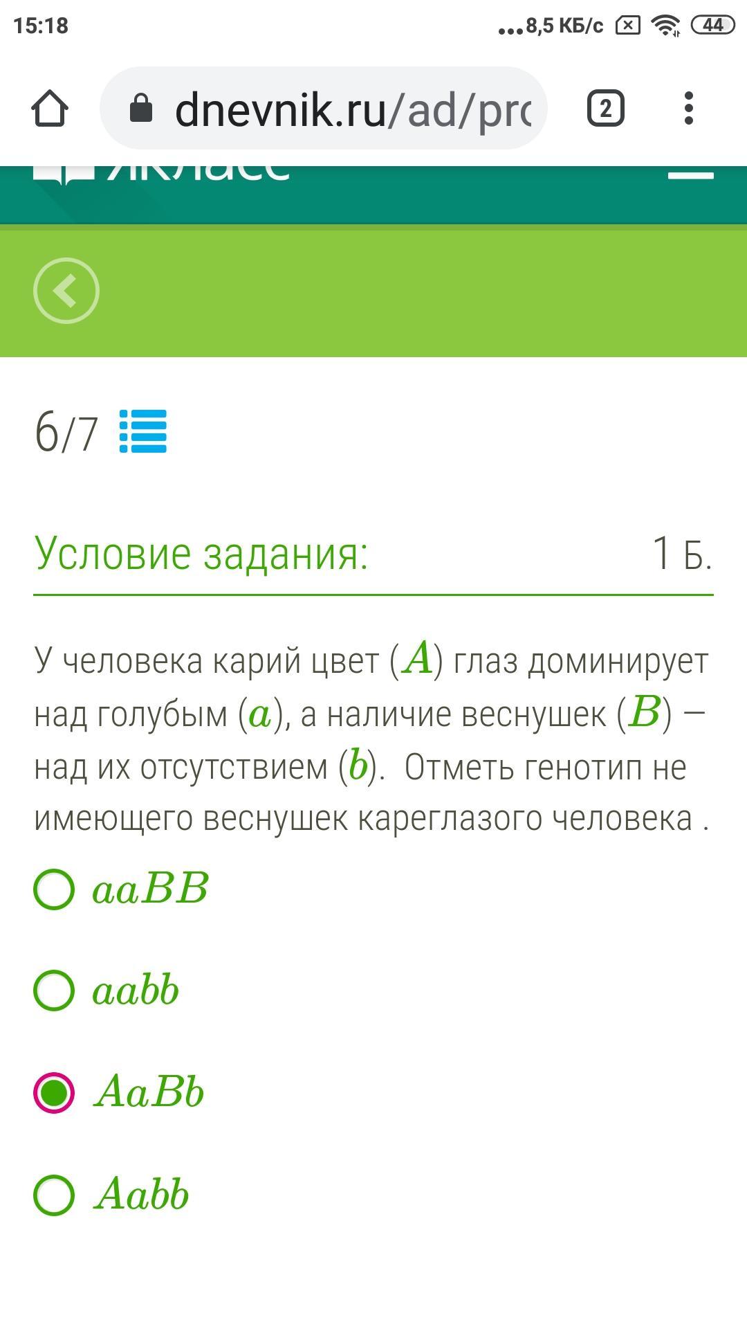Генотип не имеющего веснушек кареглазого человека может быть либо ААвв или Аавв. Из представленных вариантов ответа нам подходит четвертый, а именно Аавв