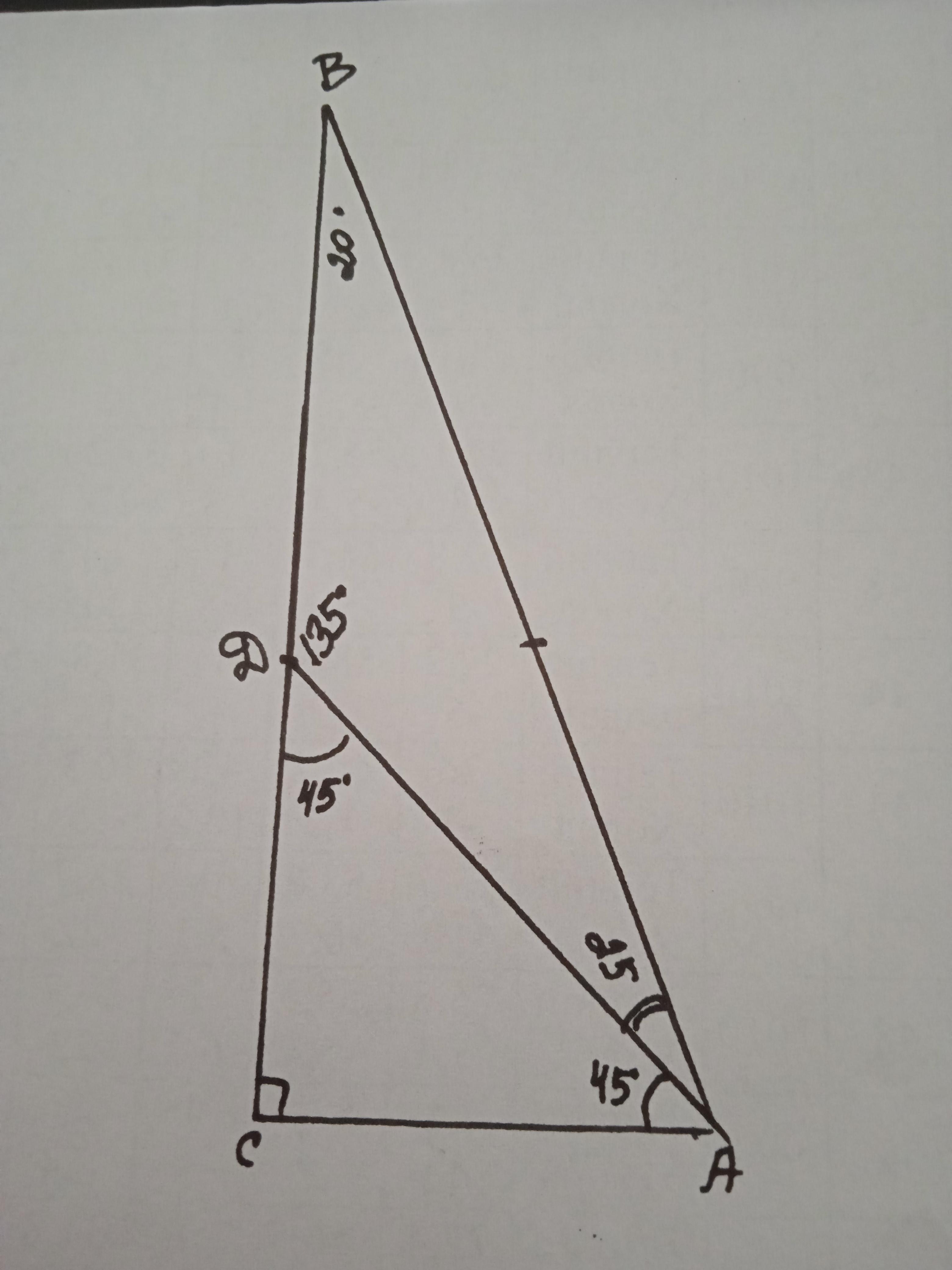 У трикутнику АВС кут С дорівнює 90°, а кут А дорівнює 70°. На катеті ВС відкладено відрізок СD рівний СА. Знайдіть кути трикутника АВD. Мне нужен хотя бы рисунок