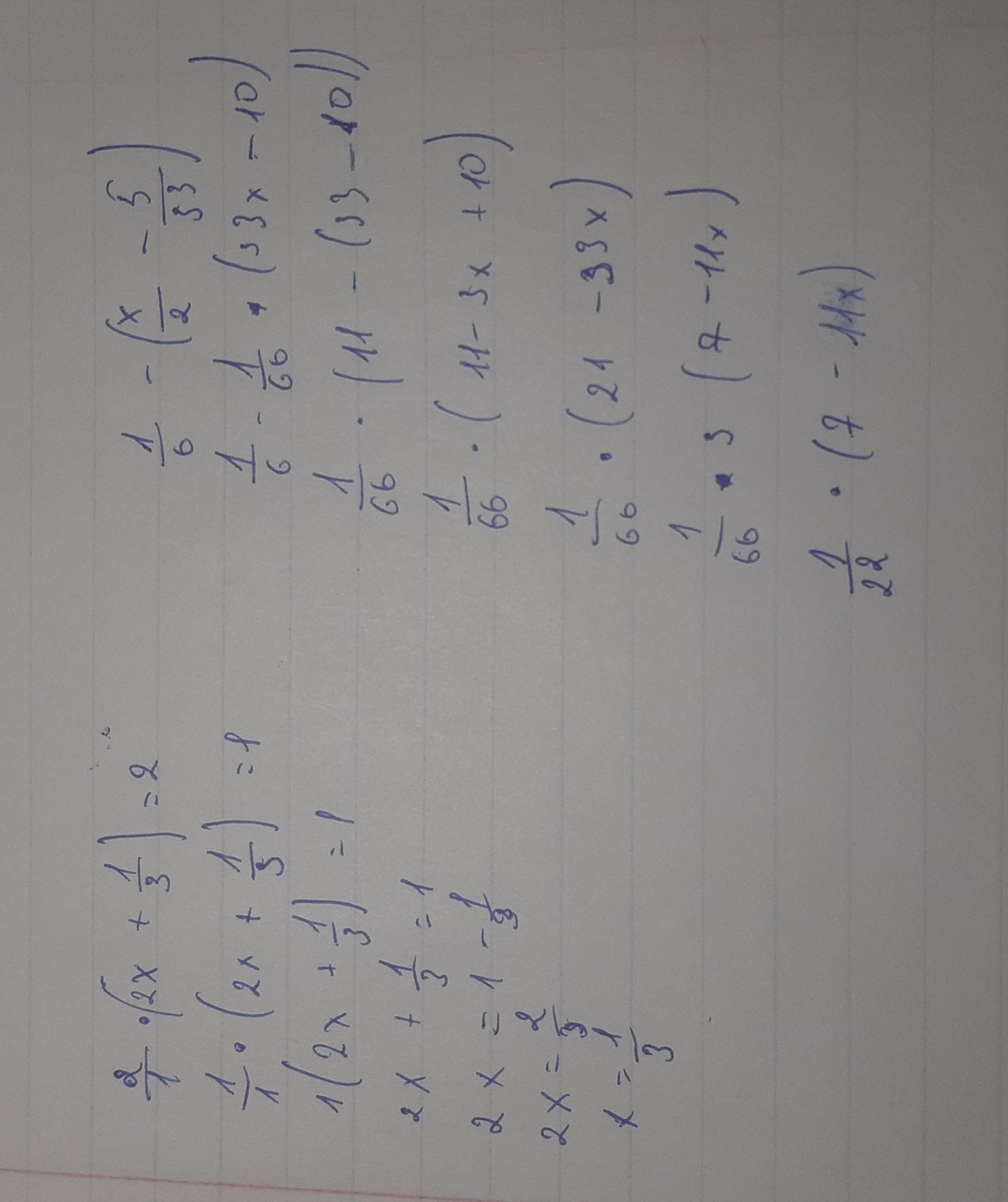 1e) 2/1(2x+1/3)=2 1/6-(x/2-5/33)