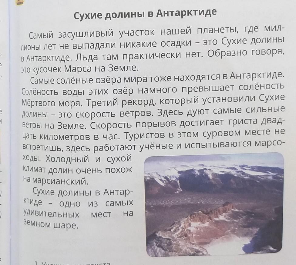 Объяснение: повествуется, то есть рассказывается о долинах Антарктиды.