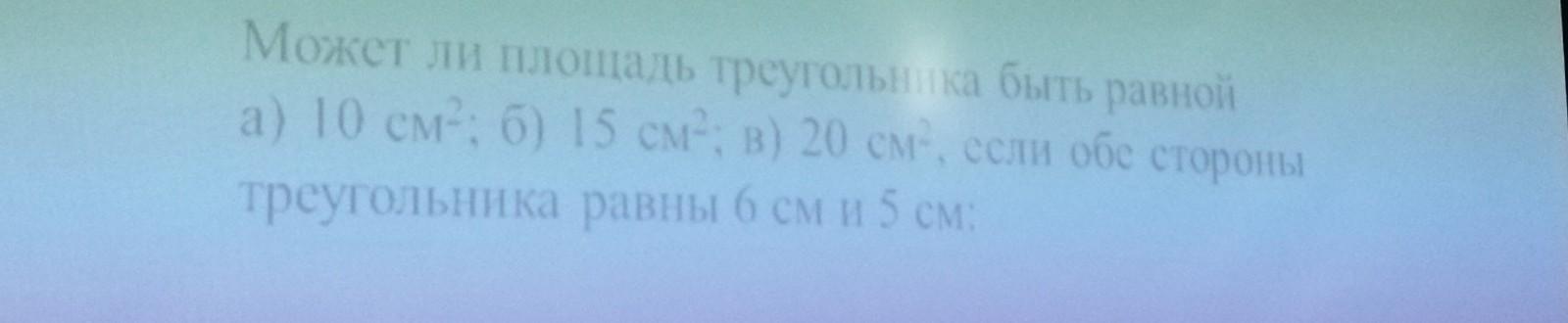 Так как sinC<=1, то S<=15 -> площадь не может быть 29 см², но может быть равна 10см² , если треугольник остроугольный, или 15см², если треугольник прямоугольный.