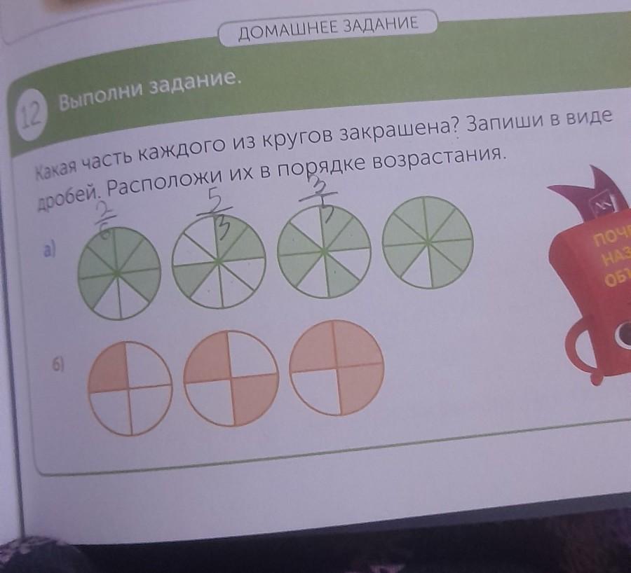 Какая часть каждого из кругов закрашен? Запиши в виде дробей. Расположи их в порядке возрастания. Помогите пожалуйста ДаЮ 15 БаЛоВ