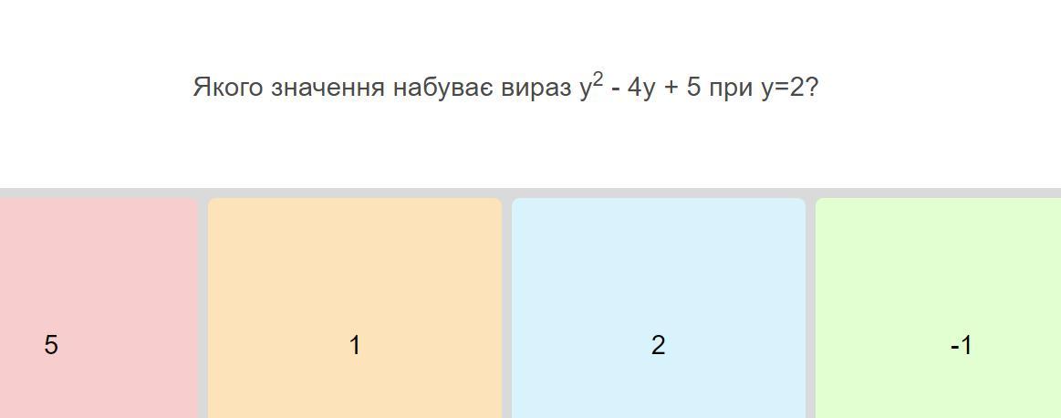 y² - 4y + 5 = 2² - 4 · 2 + 5 = 4 - 8 + 5 = -4 + 5 = 1