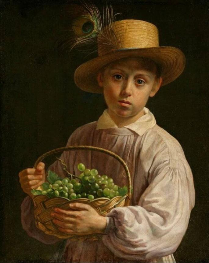 4. Как изображена корзина с виноградом? Как мальчик держит её? Как выписана каждая ягода? Позволяют ли цветовые оттенки, используемые художником, подчеркнуть сочность винограда?