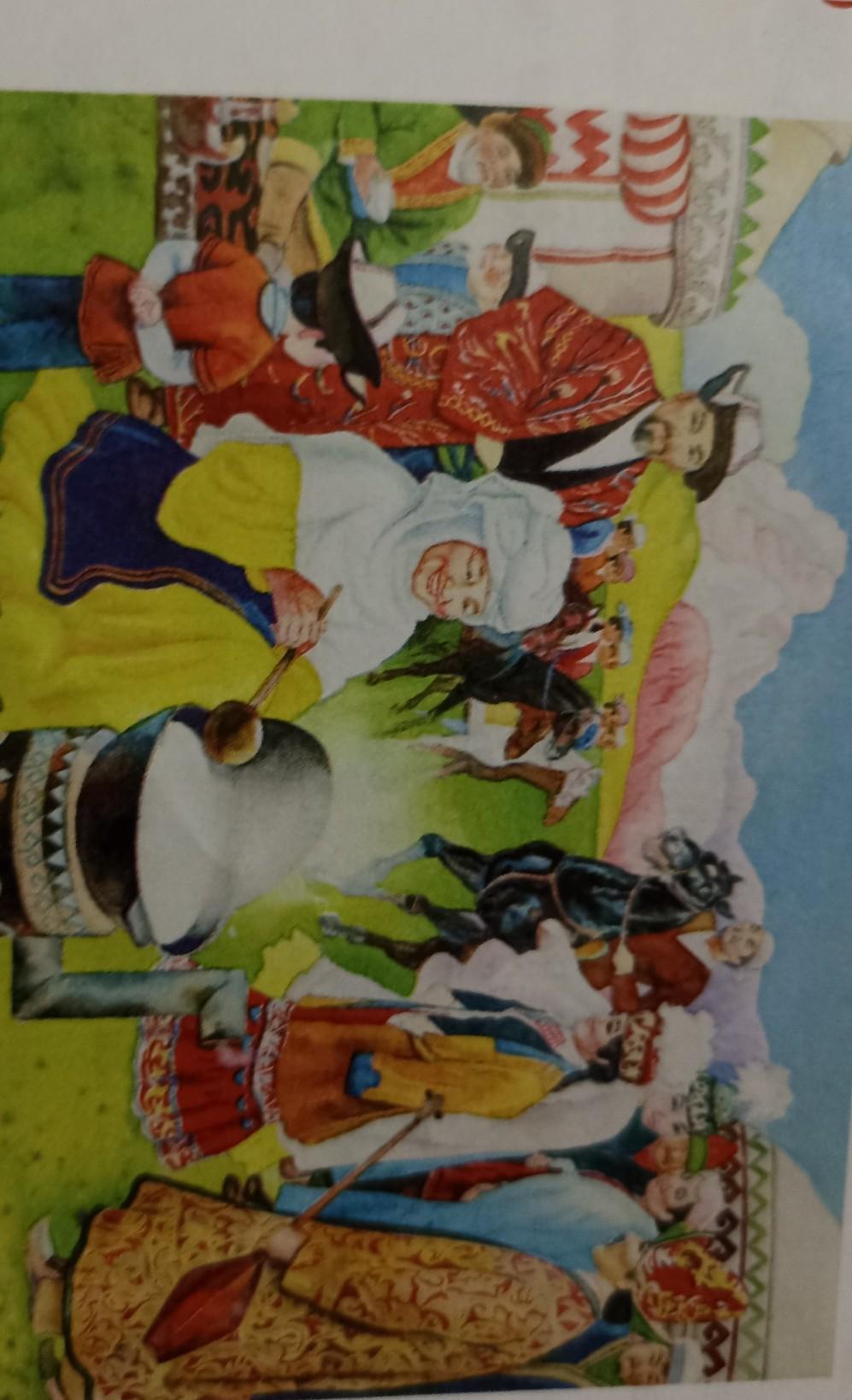 Менің ойымша бұл суретте "Наурыз мейрамы" бейнеленген. Наурыз мейрамы қазақтың ұлттық мейрамы. Наурыз тойы десек қателеспейміз. Наурыз мейрамын тағыда "Ұлыстың ұлы күні " деп айтады. Ұлыстың ұлы күні туған-туыс, ағайын-бауырлар жиналып бір дастархан басында наурыз көже ішеді. Оны аналарымыз немесе әжелеріміз дайындайды. Тағы ұлыстың ұлы күні түрлі ұлттық ойындар ойнатылады. Әсіресе ауылда.Ұлттық ойындарда: көппар тартады, алтты бақан тебеді, тіпті күресіп жатады. Аналарымыз әжелеріміз бауырсақ пісір дастархан жаяды.