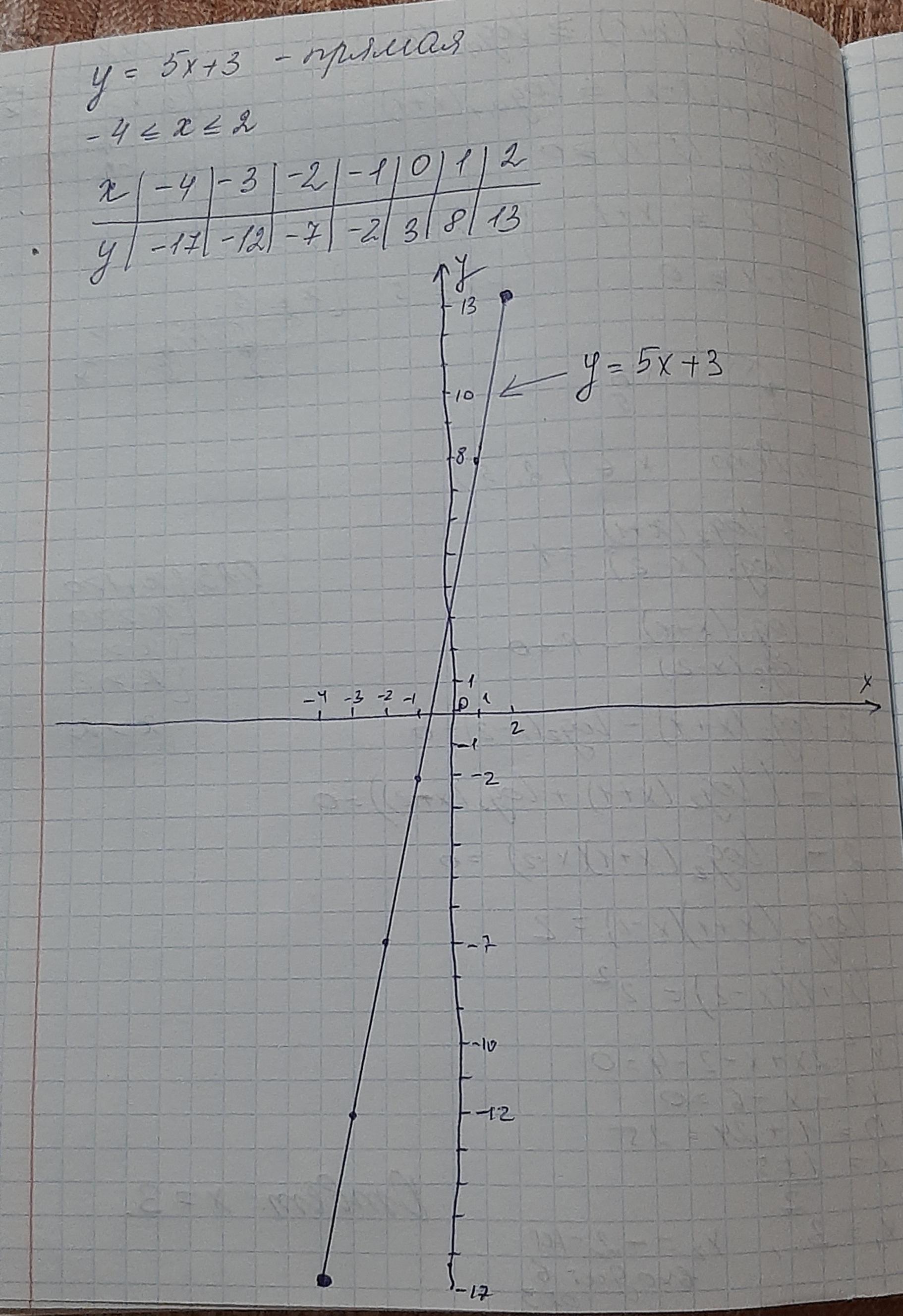 y=5x+3 якщо(если) -4≤x≤2 кто ответит отдам все балы срочно пожалуйста