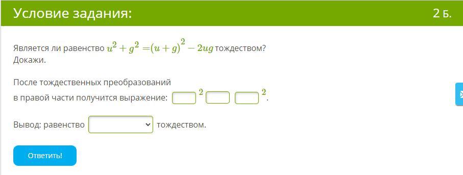 Является ли равенство u2+g2=(u+g)2−2ug тождеством?