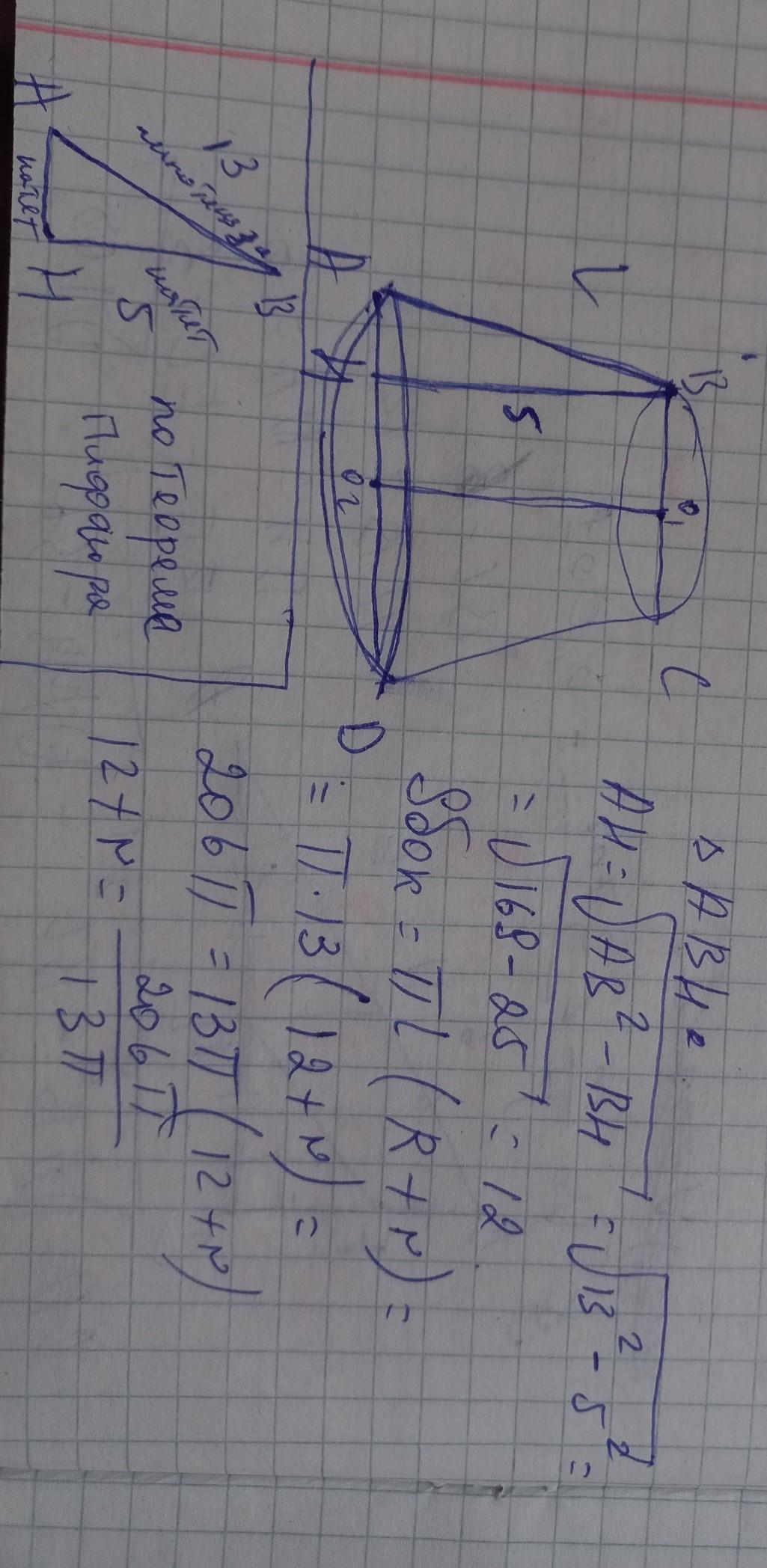 знайти радіуси основи зрізаного конуса,якщо його бічна поверхня дорівнює 206 ПИ твірна-13 а вісота-5 ПОМОГИТЕЕЕЕЕЕЕЕЕЕЕЕЕЕЕЕЕЕЕЕЕЕЕЕЕЕЕЕЕЕЕЕЕЕЕЕЕЕЕ СРОЧНОООО