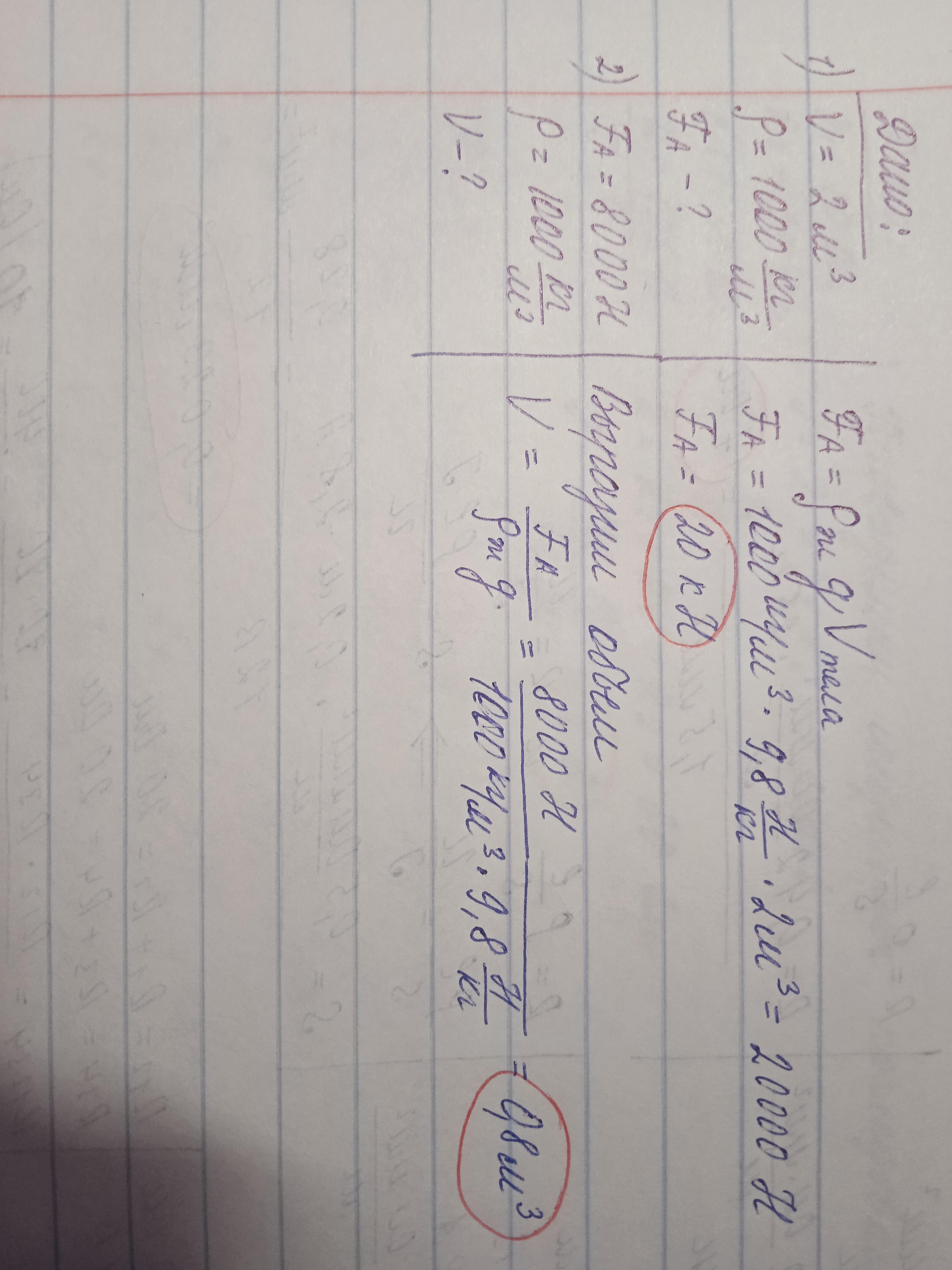 Задача 1. Тело объемом 2 м3 погружено в воду. Найдите архимедову силу, действующую на тело. Задача 2. Каков объем железобетонной плиты, если в воде на нее действует выталкивающая сила 8000 Н? пожалуйста