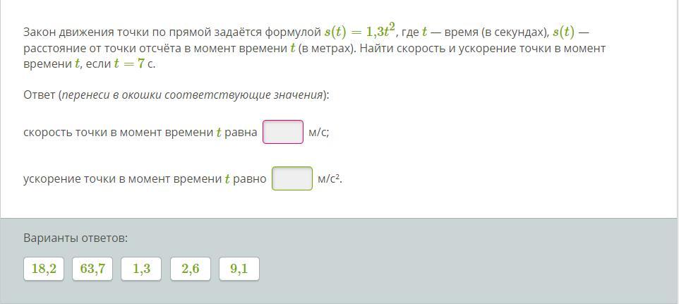V( 7 ) = 2,6 * 7 = 18,2 ( м/с ) ; V( 7 ) = 18,2 м/с ;