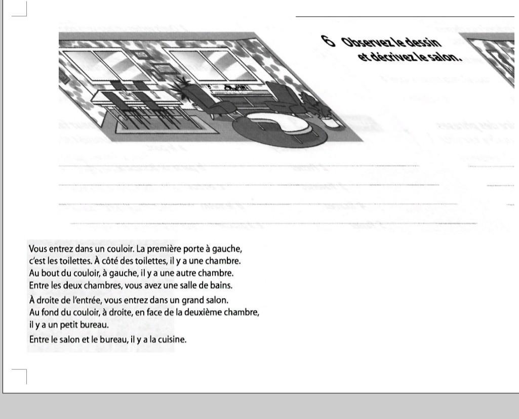 Рассмотреть рисунок и описать комнату, используя название предметов мебели, предлогов. Чтобы правильно построить предложения, используем фразы из текста под заданием