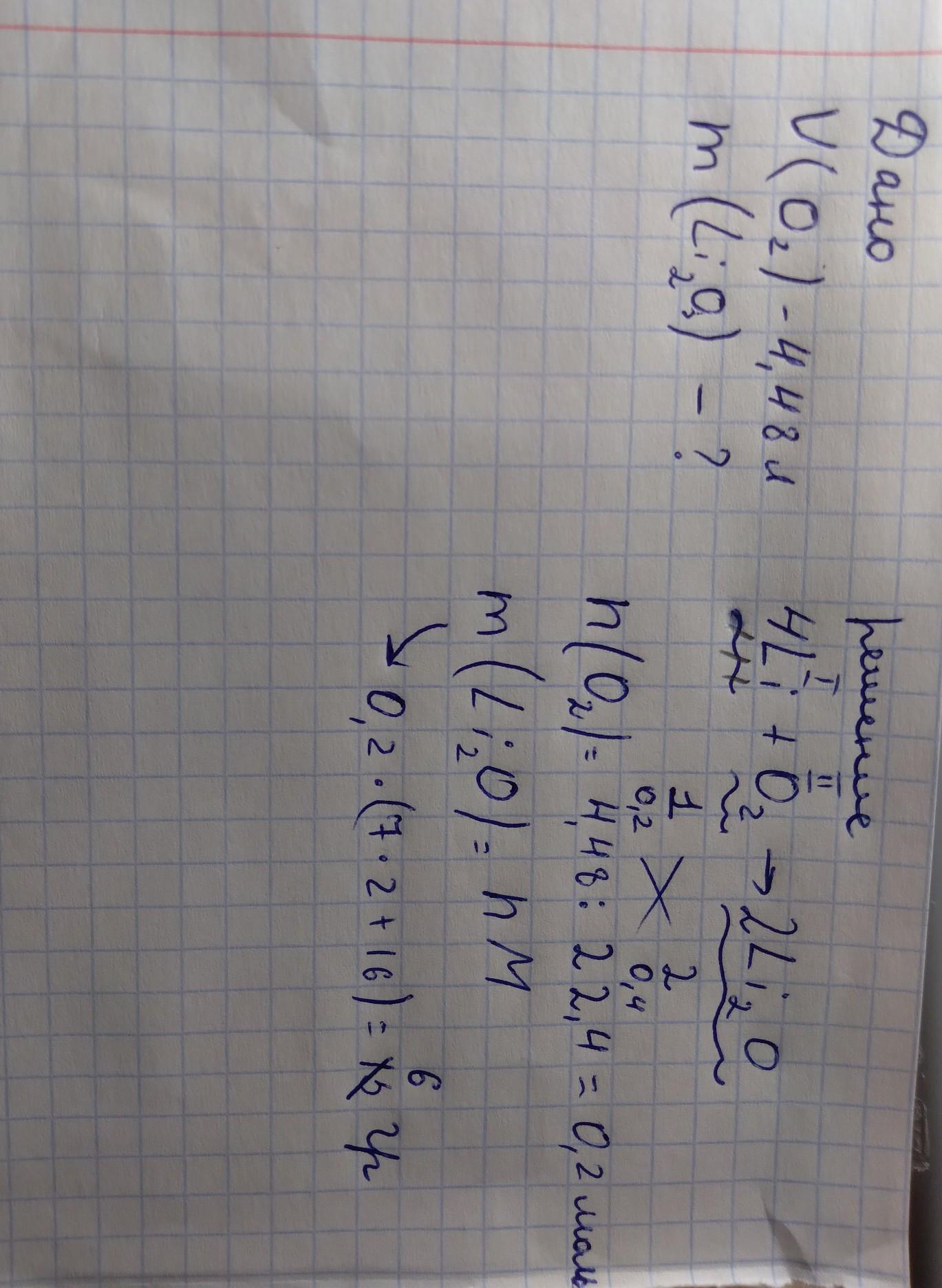 Помогите вычислить массу оксида, образующегося при взаимодействии лития с кислородом объемом 4,48л