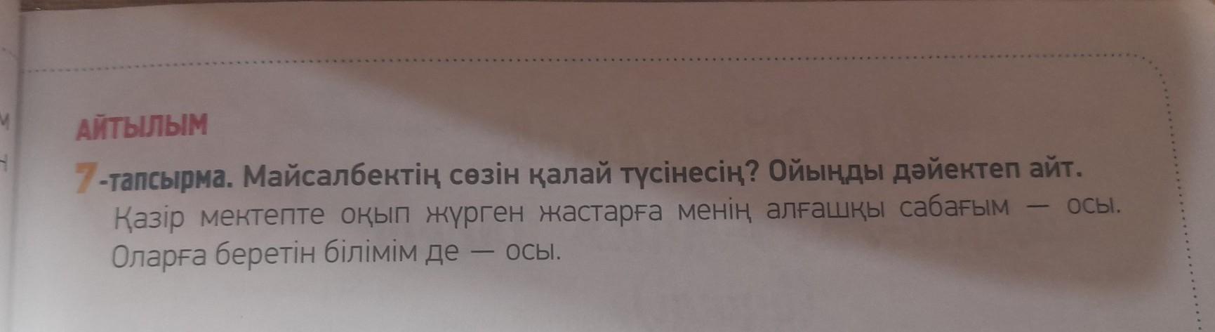 -тапсырма. Майсалбектің сөзін қалай түсінесің? Ойыңды дәйектеп айт. Қазір мектепте оқып жүрген жастарға менің алғашқы сабағым Оларға беретін білімім де – осы. помогите пожалуйста 10 балов дам