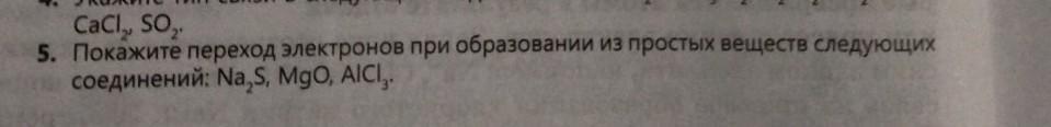 5. Покажите переход электронов при образовании из простых веществ следующих соединений: Na,S, MgO, АІСІ,