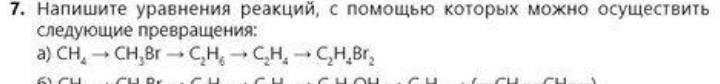 a) CH4 + Br2(свет) -> CH3Br + HBr