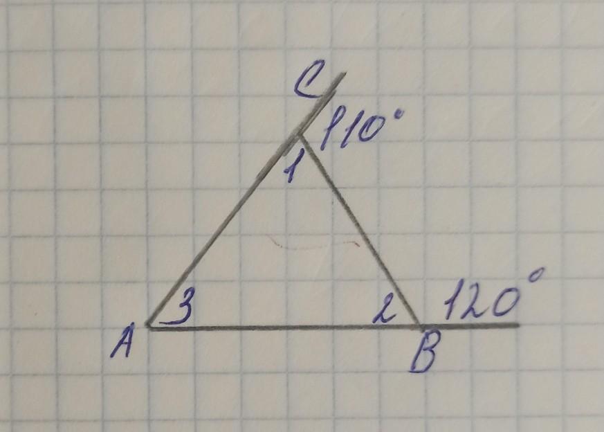 70° + 60° + ∠3 = 180°, откуда находим ∠3: