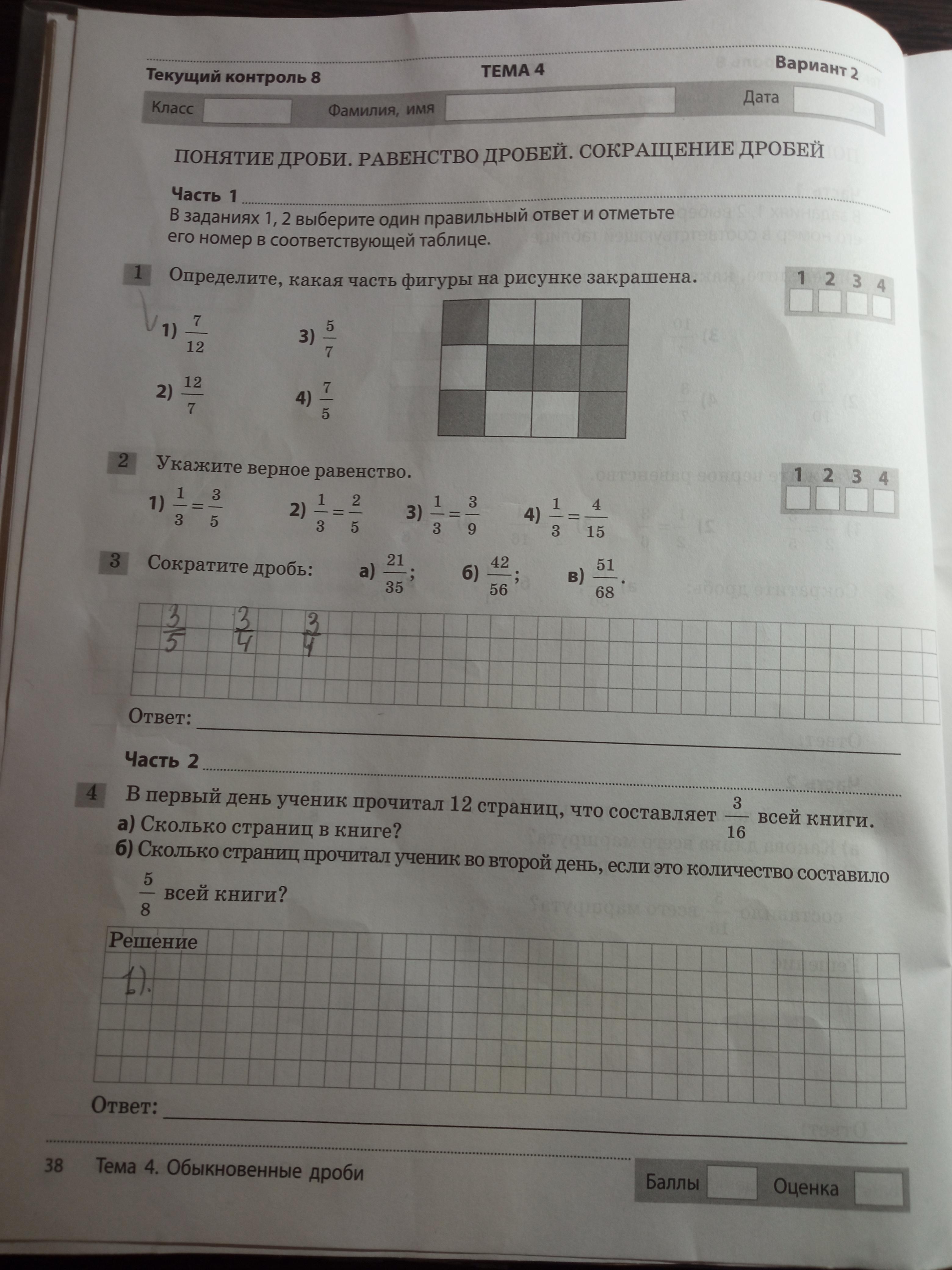Есть фигура. Она поделена на 12 маленьких квадратов . Из 12 квадратов - 7 закрашено.