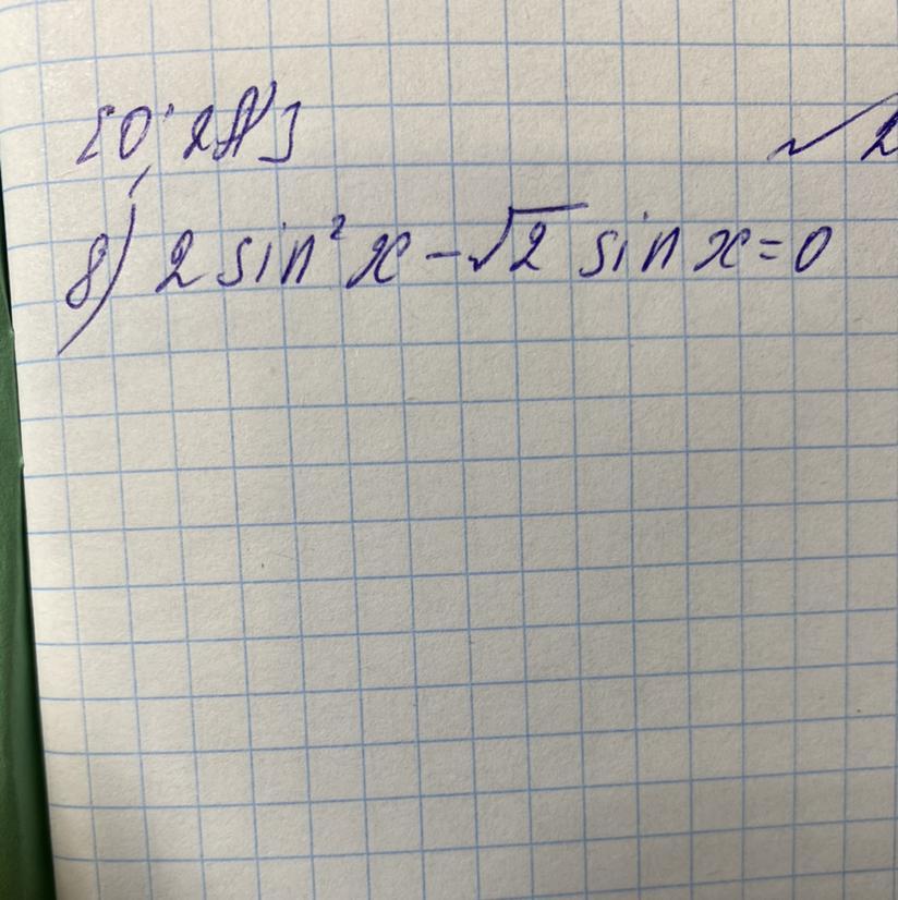 Объяснение: 2Sin²x-√2Sinx=0 x∈[0; 2π]