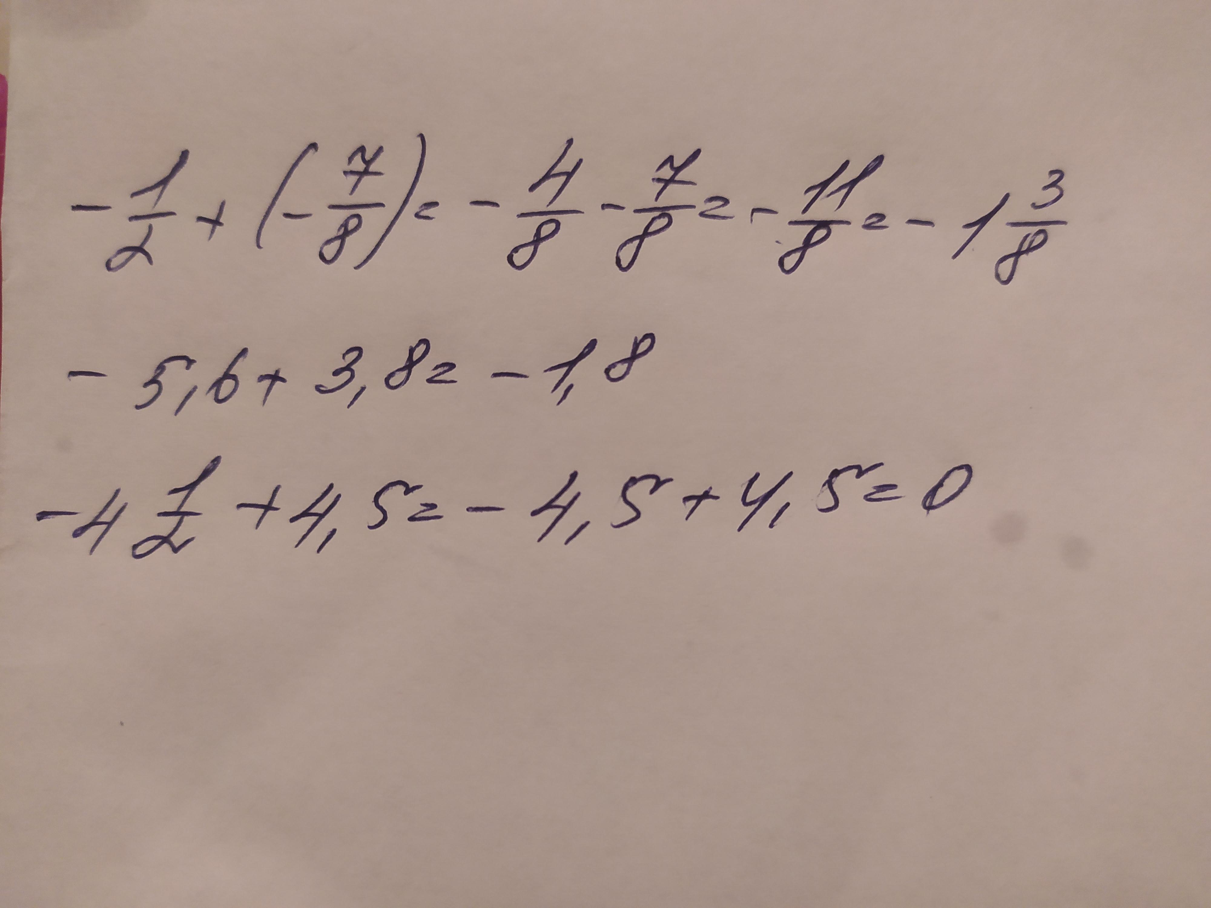–½+(–⅞)= –½–⅞= –1⅜= –1,375