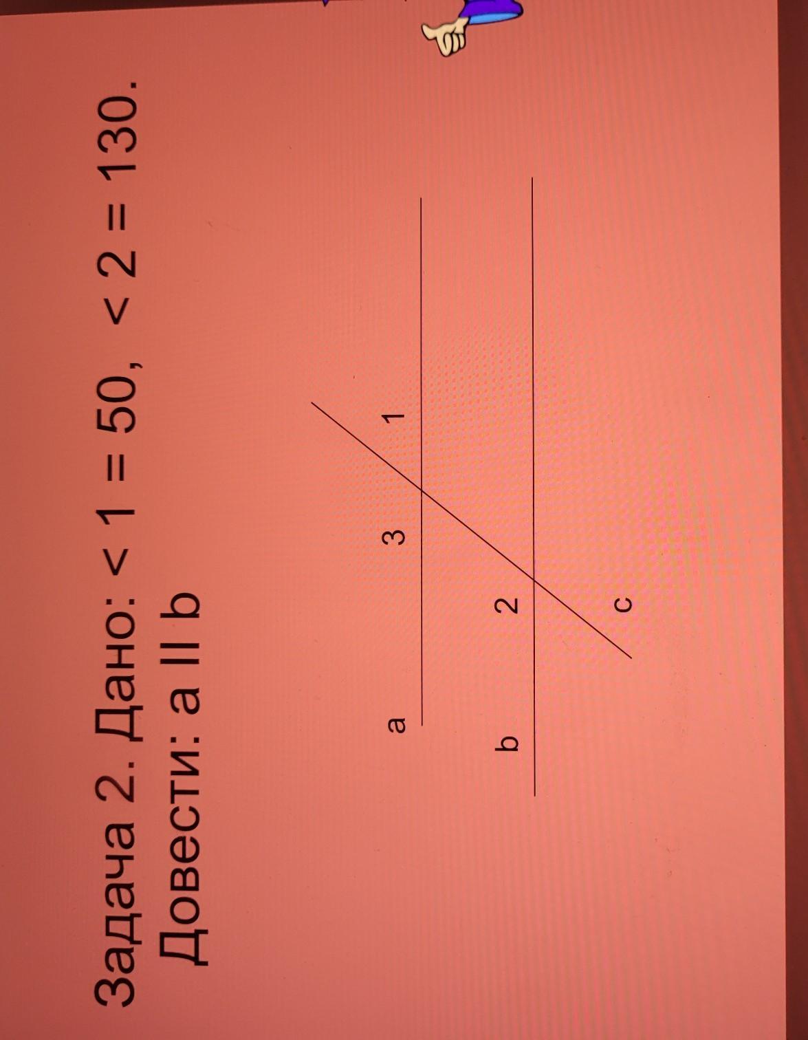 Объяснение: Пусть вертикальный угол с углом 1 будет угол 4, тогда он равен 50 градусам. Углы 2 и 4 внутренние, а так как их сумма равна 180 градусам (130+50=180), то прямые a и b параллельны по свойству углов при параллельных прямых.