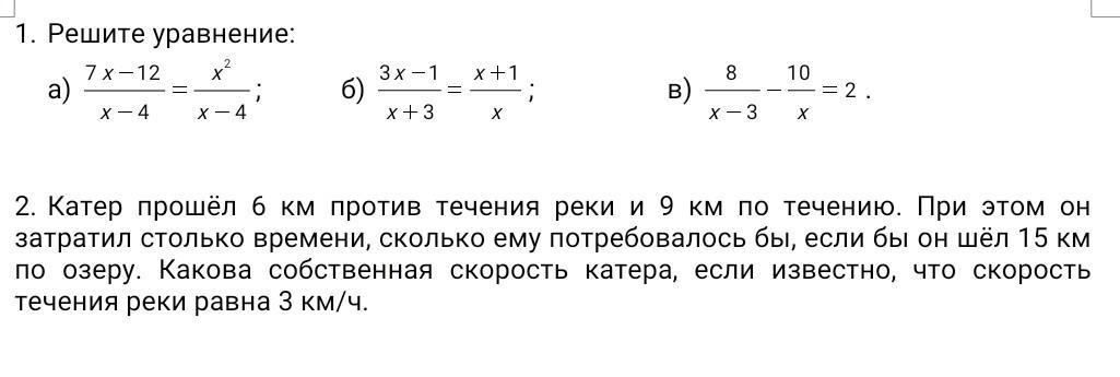 1)a) x не =4, 7x-12=x^2, x^2-7x+12=0, корни х=3, х=-4 (не подходит)
