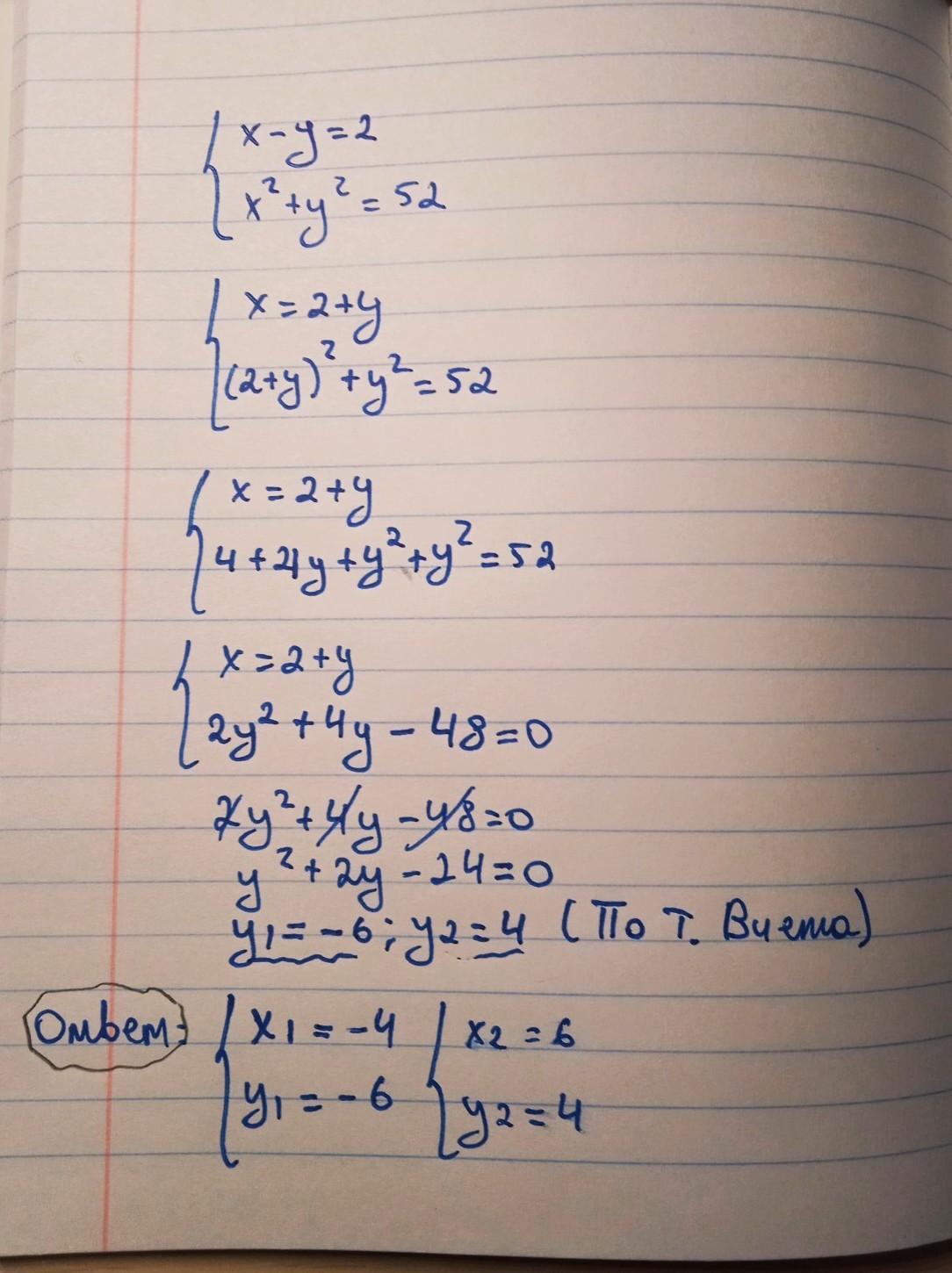 Різниця двох натуральних чисел дорівнює 2 ,а сума їх квадратів дорівнює 52.