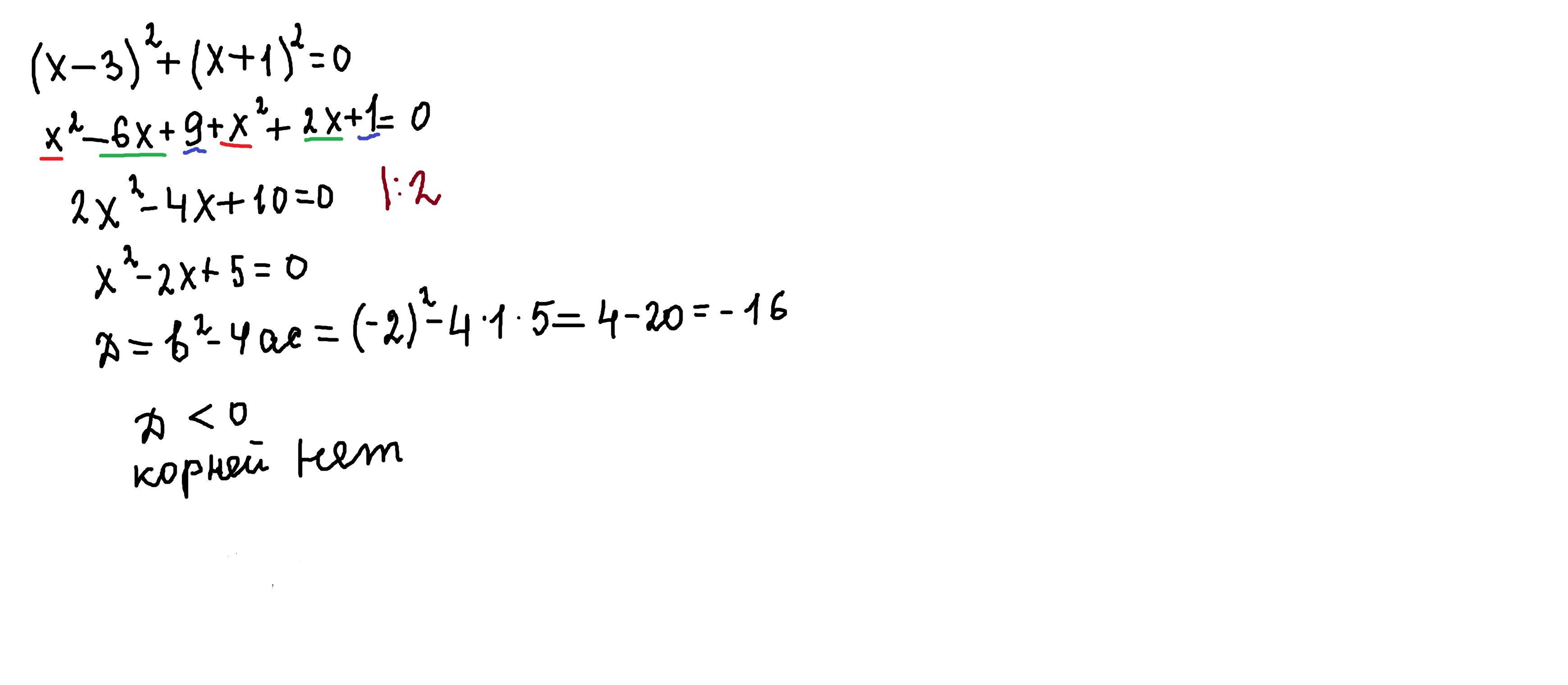 дискриминант отрицательный,корней нет ∅