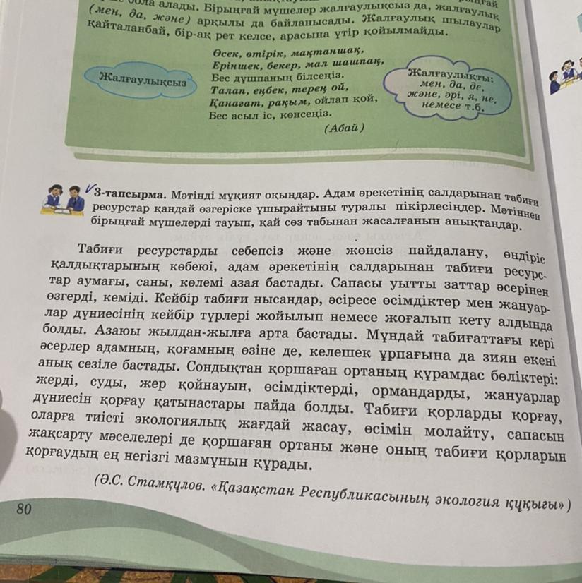 3-тапсырма. Мәтінді мұқият оқыңдар. Адам әрекетінің салдарынан табиғи