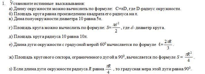 г) Площадь круга можно вычислить по формуле: S=, где d- диаметр круга.